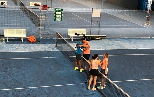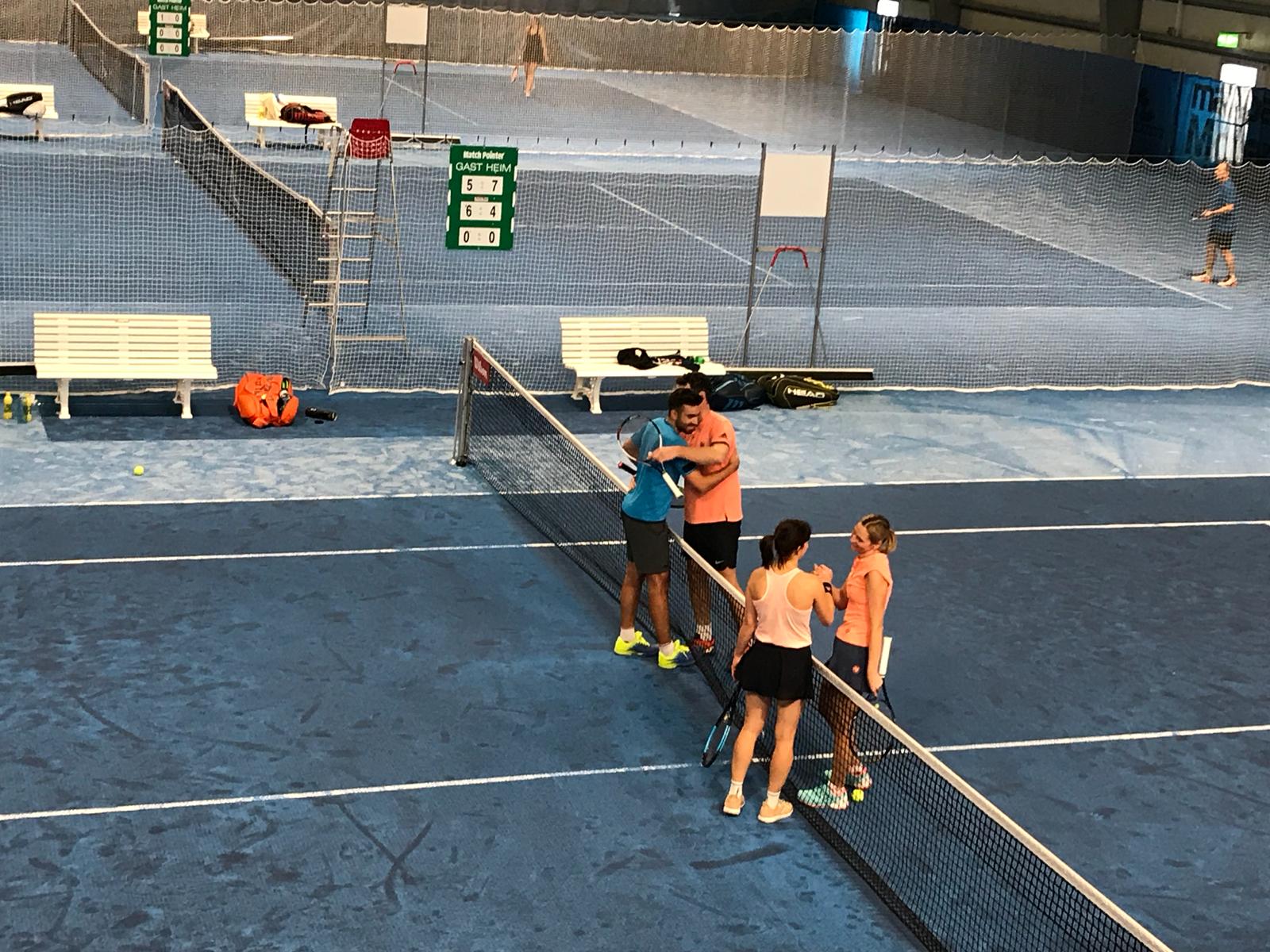 Gerade jetzt fertig ein Thriller der Extraklasse: Im Mixed-Doppel bezwangen Cornelia Lässer und Gerhard Lässer (vom TC Bludenz bzw. UTC Schlins) ds Doppel Barbara Oelz (TC Dornbirn) und Felix Wohlgenannt (TC ESV Feldkirch) mit 7:5, 4:6 und 13:11.