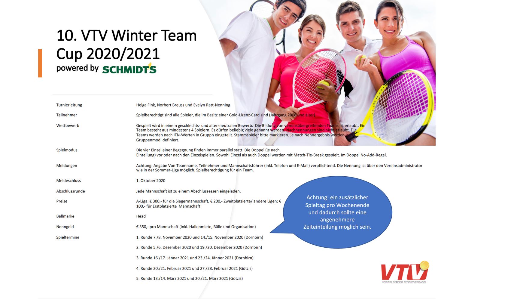 Meldungen für 10. VTV-WinterTeamcup 2020/21 powered by Schmidts möglich