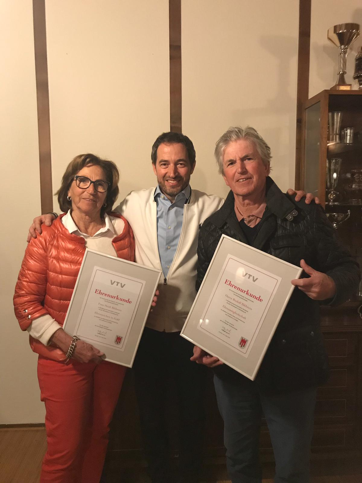 Einer der Höhepunkte waren die Ehrungen: Rudolf Billy Bildstein wurde zum VTV-Ehrenmitglied ernannt, seine Gattin Heidi erhielt ebenso das Goldene Ehrenzeichen wie der langjährige VMM-Referent Stefan Rauth.