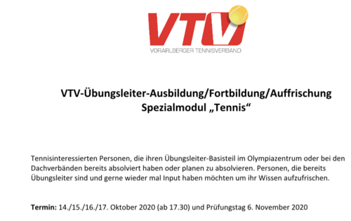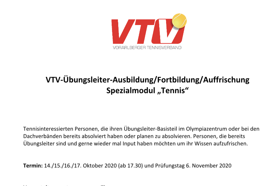 VTV-Übungsleiter-Ausbildung/Fortbildung/Auffrischung im Bereich Tennis